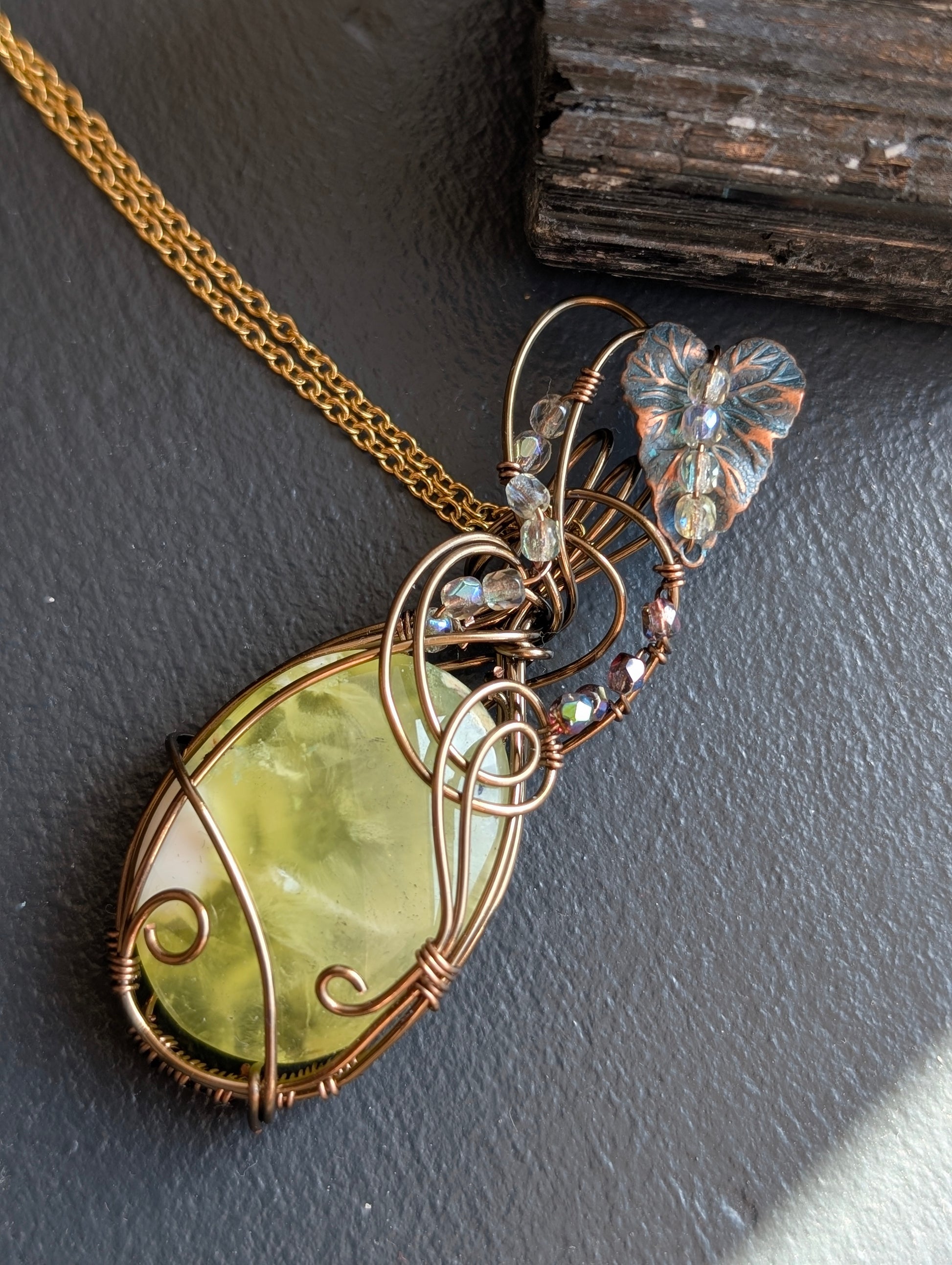 Collier wirewrap avec prehnite citron